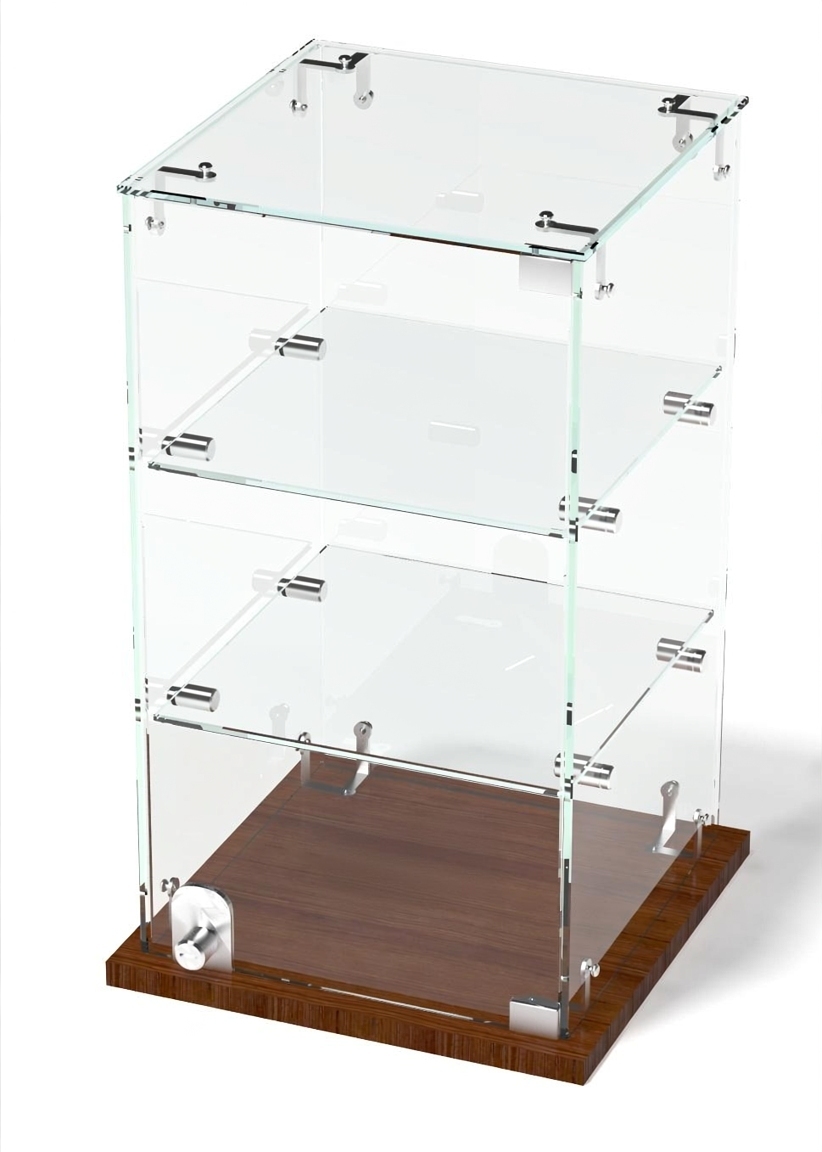 Габариты: 300х300х500 мм. 2 стеклянных полки 4 мм, дверка с замком. Поставляется в упакованном виде. Возможно изготовление в нестандартных размерах.Вес витрины 13 кг, транспортировочный объем -0,017 м3. Кол-во упаковок -2 шт.