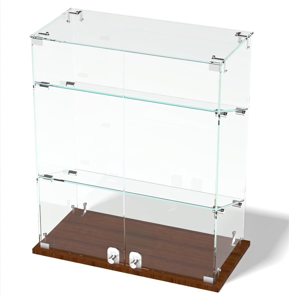 Габариты: 600х300х700 мм. 2 наклонных стеклянных полки 4 мм, дверка с замком. Поставляется в упакованном виде. Возможно изготовление в нестандартных размерах. Вес витрины 23 кг, транспортировочный объем -0,03 м3. Кол-во упаковок -2 шт.