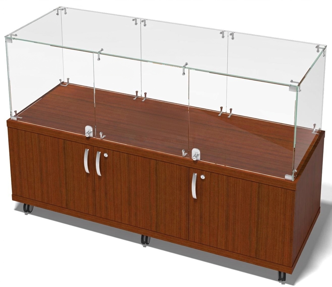 Прилавок 14/90Т. Габариты: 1400х500х900мм. Основание и крышка накопителя - ЛДСП 32 мм (кромка ПВХ - 2мм),боковины, дверки, задняя стенка и крышка в демонстрационной части (Н=400 мм) - 5 мм стекло марки М1. Накопитель -дверки ЛДСП с замком.По запросу витрины могут комплектоваться колесными опорами (стандартная комплектация -регулируемые опоры высотой 100 мм). Витрина поставляется в разобранном, упакованном виде. Вес витрины -85 кг, транспортировочный объем -0,12 м3