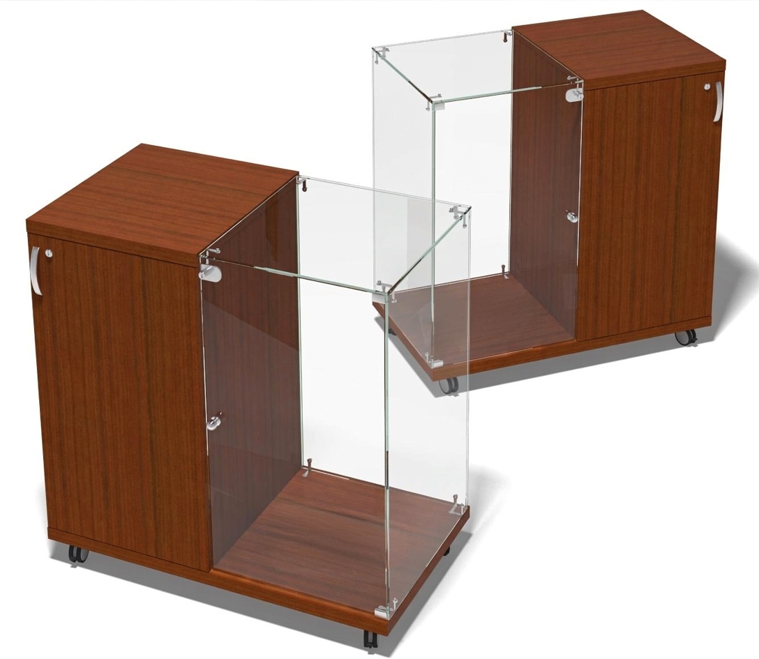 Прилавок 9/90R3. Габариты: 900х500х900мм. Основание и крышка тумбы - ЛДСП 32 мм (кромка ПВХ - 2мм),боковины, дверки, задняя стенка и крышка в демонстрационной части - 5 мм стекло марки М1. Тумба -дверка ЛДСП с замком, внутри -2 полки. В демонстрационной части -2 стеклянные полки 6 мм.По запросу витрины могут комплектоваться колесными опорами (стандартная комплектация -регулируемые опоры высотой 100 мм). Витрина поставляется в разобранном, упакованном виде. Вес витрины -65 кг, транспортировочный объем -0,1 м3