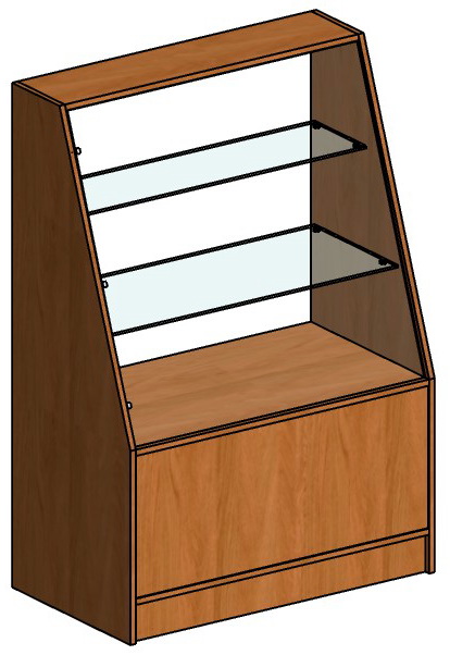 Технические характеристики: Ширина - 900 мм Высота - 1300 мм Глубина - 500 мм. Корпус - ЛДСП 16 мм, кромка ПВХ 0,4 мм. Фасад - стекло 5 мм. Полки - стекло 5 мм. Кол-во полок - 2 шт. Полки съемные, нерегулируемые по высоте. Полки расположены лесенкой. Макс. распределенная нагрузка на полку - 7 кг. Кол-во отделений для товара - 3 шт. Опоры нерегулируемые. Вес – 46 кг. Упаковка - гофрокартон. Поставка в разобранном виде.