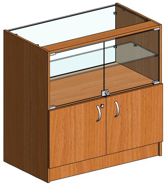Технические характеристики: Ширина - 900 мм Высота - 900 мм Глубина - 500 мм Корпус - ЛДСП 16 мм, кромка ПВХ 0,4 мм. Фасад - стекло 5 мм. Крыша / створки - стекло 5 мм. Полка - стекло 5 мм. Кол-во полок - 1 шт, глубина полки - 300 мм, полка съемная, нерегулируемая по высоте. Максимальная распределенная нагрузка на полку - 8 кг. Кол-во отделений для товара - 2 шт. Дверки распашные на замках. Опоры нерегулируемые. Вес – 46 кг. Упаковка - гофрокартон. Поставка в разобранном виде.
