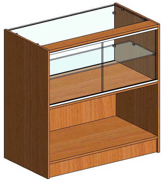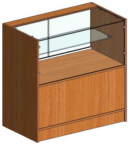 Технические характеристики: Ширина - 900 мм Высота - 900 мм Глубина - 500 мм Высота остекления - 400 мм Накопитель - ЛДСП 16 мм, кромка ПВХ 0,4 мм. Фасад - стекло 5 мм. Полка - стекло 5 мм. Глубина полки - 300 мм. В демонстрационной части раздвижные стеклянные шторки. Макс. распределенная нагрузка на полку - 7 кг. Опоры нерегулируемые. Вес – 43,5 кг. Упаковка - гофрокартон. Поставка в разобранном виде.