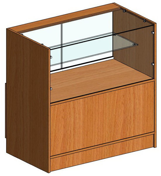 Технические характеристики: Ширина - 900 мм Высота - 900 мм Глубина - 500 мм Высота остекления - 400 мм Накопитель - ЛДСП 16 мм, кромка ПВХ 0,4 мм Фасад - стекло 5 мм Полка - стекло 5 мм Глубина полки - 300 мм Макс. распределенная нагрузка на полку - 7 кг Дверки накопителя распашные на замке Ручки скобы В стеклянной части раздвижные шторки Опоры нерегулируемые Вес – 43,5 кг Упаковка - гофрокартон Поставка в разобранном виде