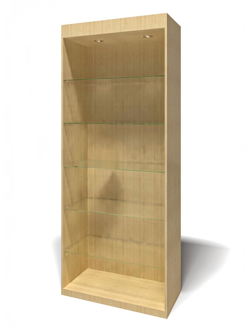 Габариты: 850х400х2100 мм. Полки -5 шт(стекло 6 мм), задняя панель - ХДФ, кромка - пвх 04 мм. Поставляется в разобранном виде (упаковка -гофрокартон). Возможно изготовление в нестандартных размерах.