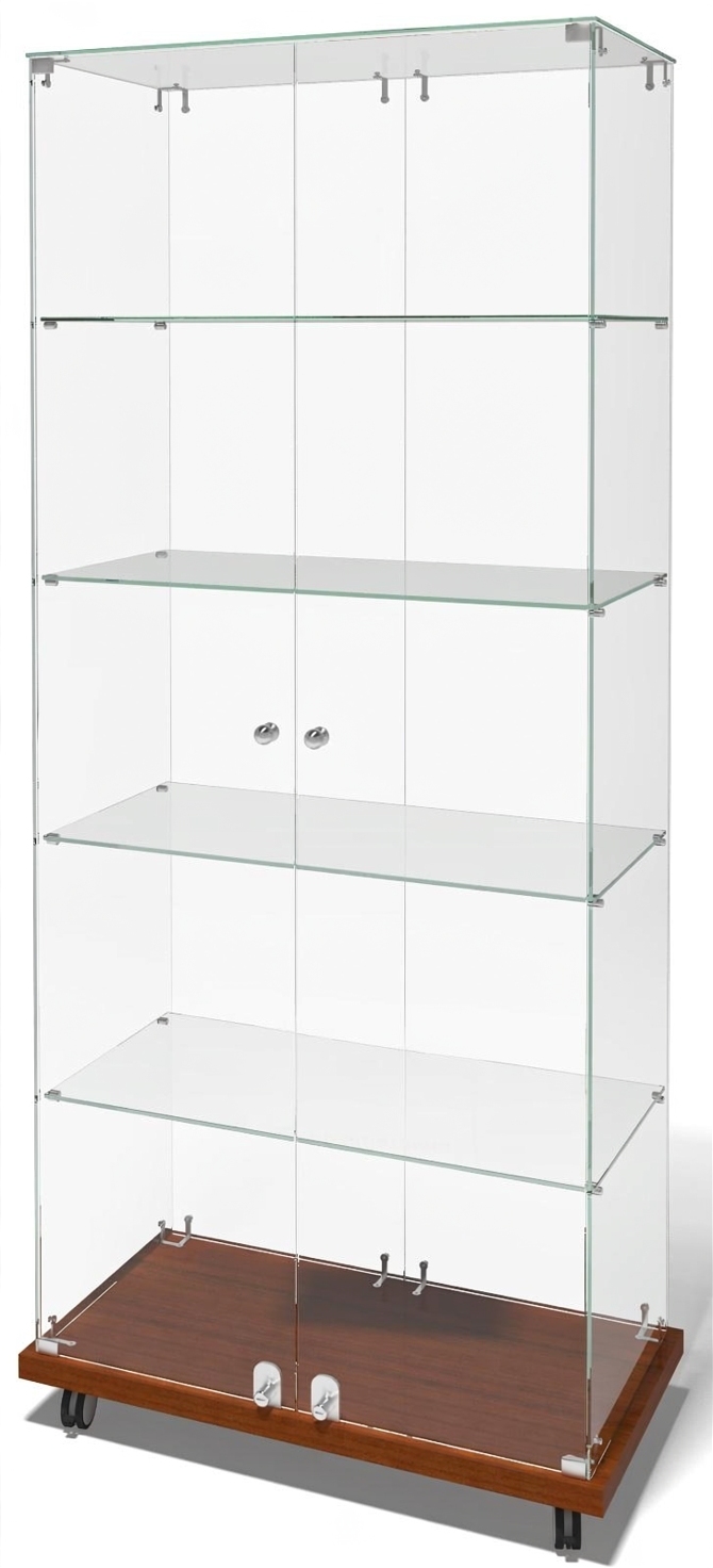 Витрина 8/18. Габариты: 800х400х1800мм. Основание - ЛДСП 32 мм (кромка ПВХ - 2мм),боковины, дверки, задняя стенка и крышка в демонстрационной части - 5 мм стекло марки М1. В демонстрационной части -4 стеклянные полки 6 мм. По запросу витрины могут комплектоваться колесными опорами (стандартная комплектация -регулируемые опоры высотой 100 мм). Витрина поставляется в разобранном, упакованном виде. Вес витрины -90 кг, транспортировочный объем -0,12 м3. Возможно изготовления витрин по индивидуальным размерам.
