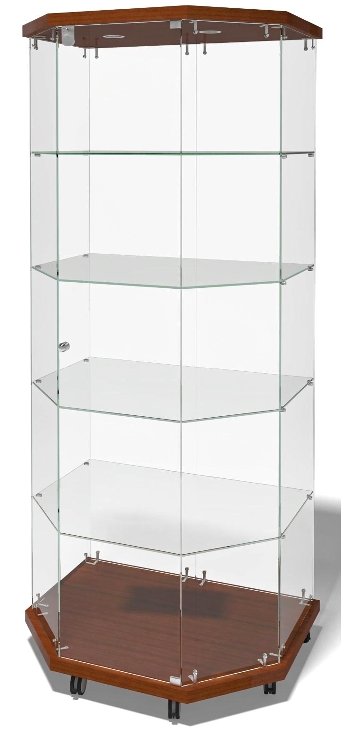 Витрина 8/TR. Габариты: 800х600х1830мм. Основание и крыша - ЛДСП 32 мм (кромка ПВХ - 2мм),боковины, дверки, задняя стенка в демонстрационной части - 5 мм стекло марки М1. Витрина укомплектована 2 точечными светодиодными светильниками. В демонстрационной части -4 стеклянные полки 6 мм. По запросу витрины могут комплектоваться колесными опорами (стандартная комплектация -регулируемые опоры высотой 100 мм). Витрина поставляется в разобранном, упакованном виде. Вес витрины -125 кг, транспортировочный объем -0,12 м3.