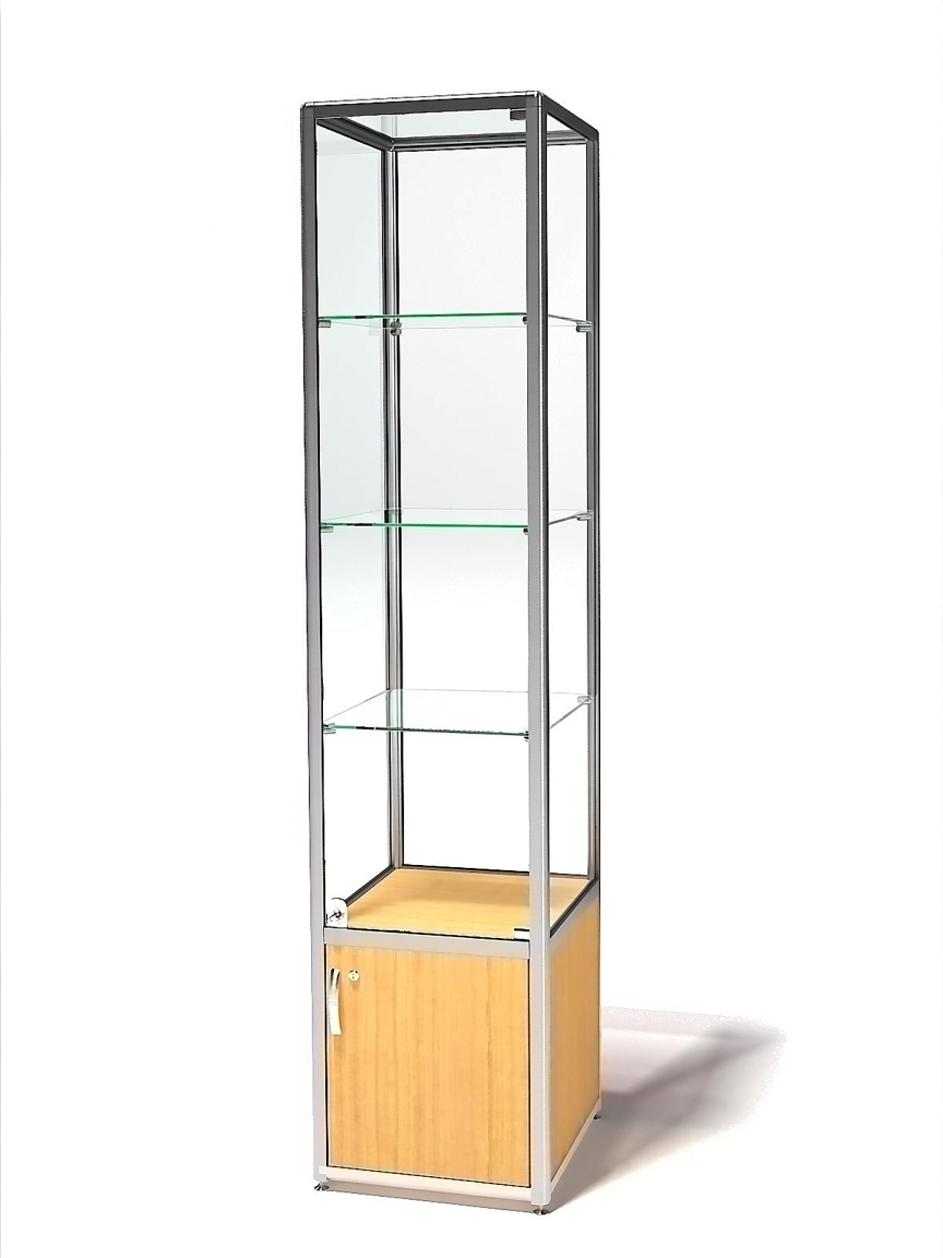 Витрина демонстрационная ВДА-02\05 ,профиль - анодированный (возможна покраска по каталогу RAL), заполнение - ЛДСП (цвет - по выбору). габариты 500х400х2000 мм. В демонстрационной части -3 регулируемых по высоте стеклянных полки(6 мм), стеклянная дверца (5 мм) с замком. Накопитель -дверка ЛДСП с замком. Поставляется в упакованном виде. Возможно изготовление данной витрины в нестандартных размерах. Надежная, универсальная витрина для демонстрации товаров и музейных экспонатов.