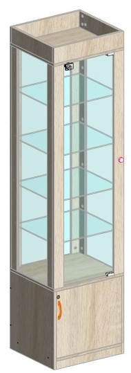 Витрина Т-50ВД. Габариты: 500х450х2000 мм. Накопитель Н=500 мм. Дверки стеклянные 5 мм c замками. Комплектуется подсветкой (1 точечный светодиодный светильник). 4 стеклянных полки толщиной 6 мм. Боковины и задняя стенка -стекло 4 мм. Возможно изготовление витрин по индивидуальным размерам. Поставляется в упакованном виде. Вес витрины-64 кг, транспортировочный объем -0,1 м3