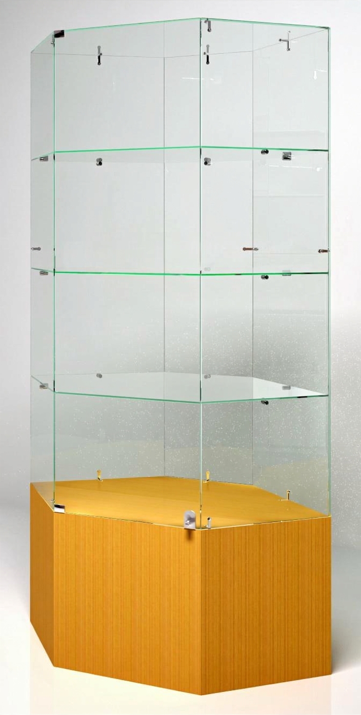 Витрина В-102УВ. Габариты: 1036х650х2050 мм. Угловая витрина. Подиум- 500 мм. Витрина со стеклянной дверкой (укомплектована замком). Крыша-стекло. 3 нерегулируемых стеклянных полки (стекло-6 мм). Цвет подиума - на выбор. Возможно изготовление витрин по Вашим размерам. Поставляется в упакованном виде .Вес витрины составляет -122 кг, объём 0,12 куб.м. Количество упаковок -4 штуки.