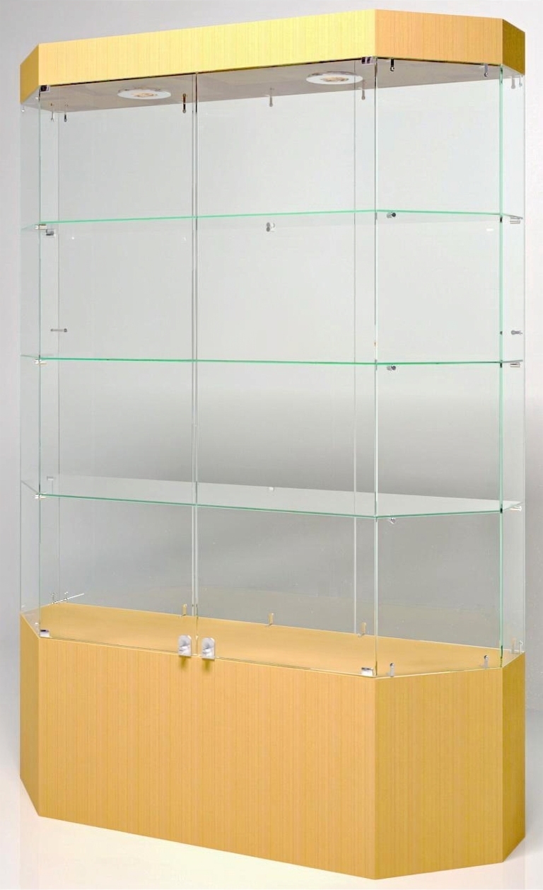 Витрина В-154ВВ. Габариты: 1520х 450х 2150 мм. Подиум- 500 мм. Дверки,боковины, задняя стенка демонстрационной части - стекло 5 мм. Цвет подиума - на выбор. Возможно изготовление витрин по Вашим размерам. в демонстрационной части -3 стеклянных нерегулируемых полки (стекло 6 мм). Верхний козырек (фриз) укомплектован подсветкой (2 точечных светодиодных светильника). Поставляется в упакованном виде .Вес витрины составляет -122 кг, объем 0,12 куб. м. Количество упаковок -5 штук. Трапецевидная форма витрины (со скошенными углами). Такая форма демонстрационной конструкции эффективна в плане демонстрации и продаж , так как дает возможность лучше осмотреть выставленный на полках товар или экспозицию.